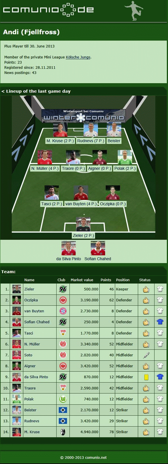 Words are not enough for you? Then try the Comunio.de Plus Player features yourself by using a guest account!